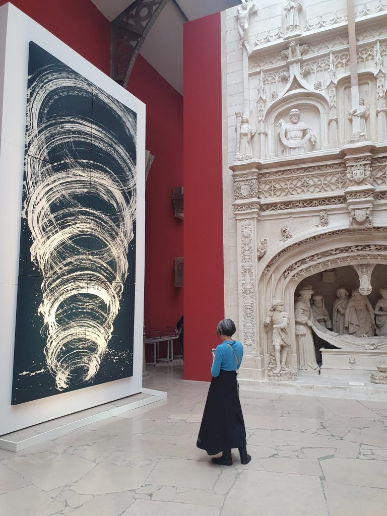 Die Kunst von Fabienne Verdier ist einzigartig durch die Verschmelzung traditioneller chinesischer Kalligrafie mit westlicher, abstrakter Malerei. Sie nutzt riesige, von der Decke hängende Rosshaarpinsel, um in einer physisch intensiven Performance am Boden zu malen, was «spontane Abstraktion» und tiefgründige energetische Linien erzeugt.